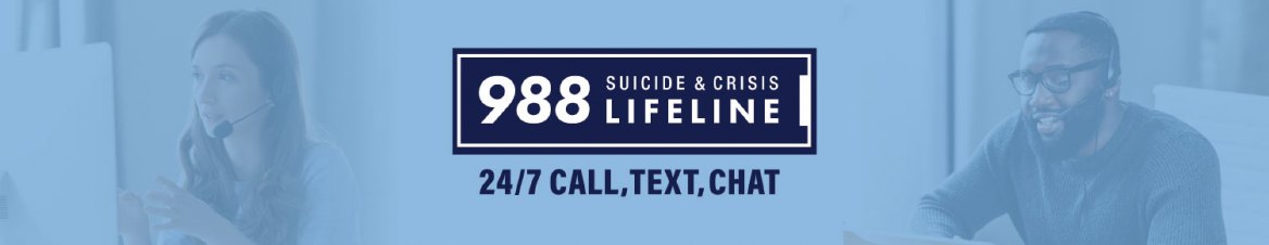 The 988 Suicide & Crisis Lifeline provides free and confidential support for anyone experiencing a suicidal, mental health, and/or substance use crisis.People of all ages who need help for themselves or a loved one can call, text, or chat 24/7.