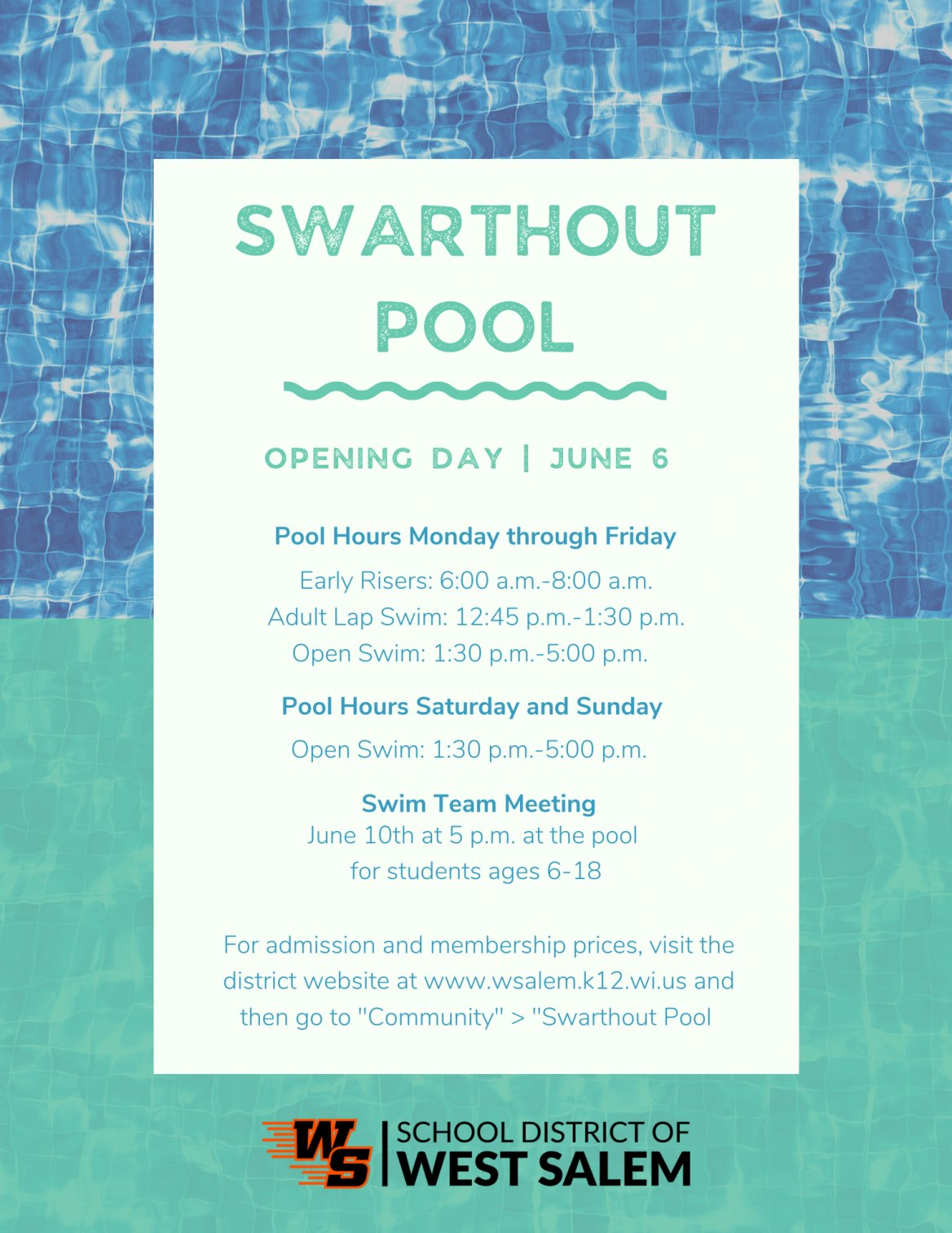 The West Salem Swarthout Pool is now open for the 2022 season. For more information on the pool, including admission prices and swimming lesson info, please visit their page here.