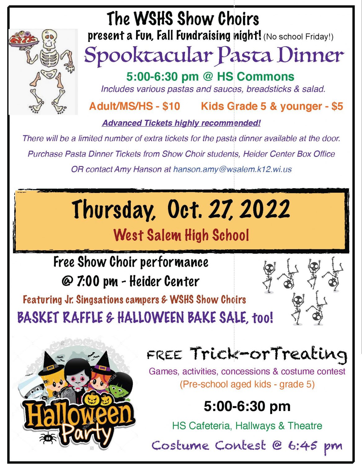 Join the WSHS Show Choirs for a fun evening of fall activities on Thursday, October 27, 2022